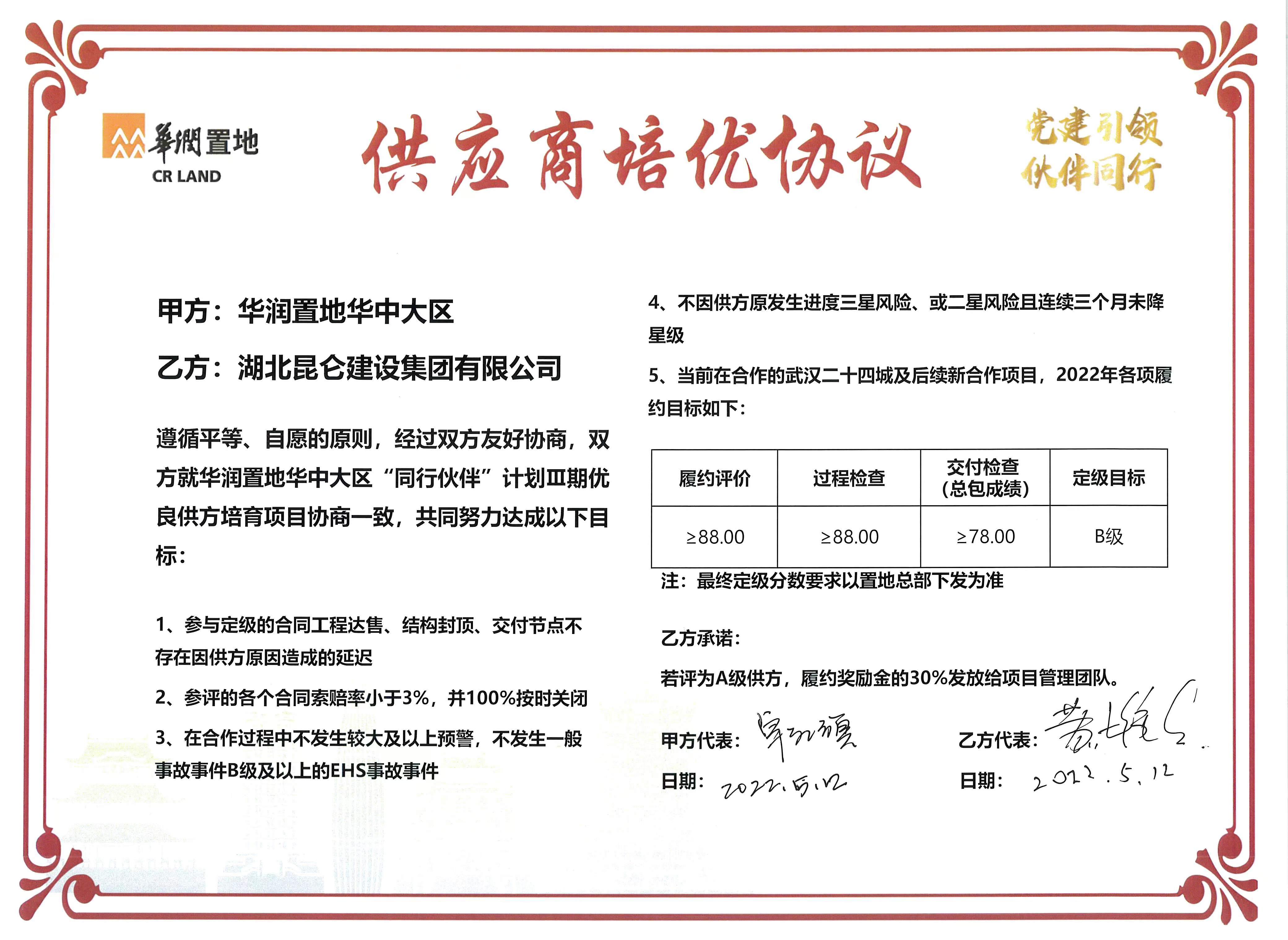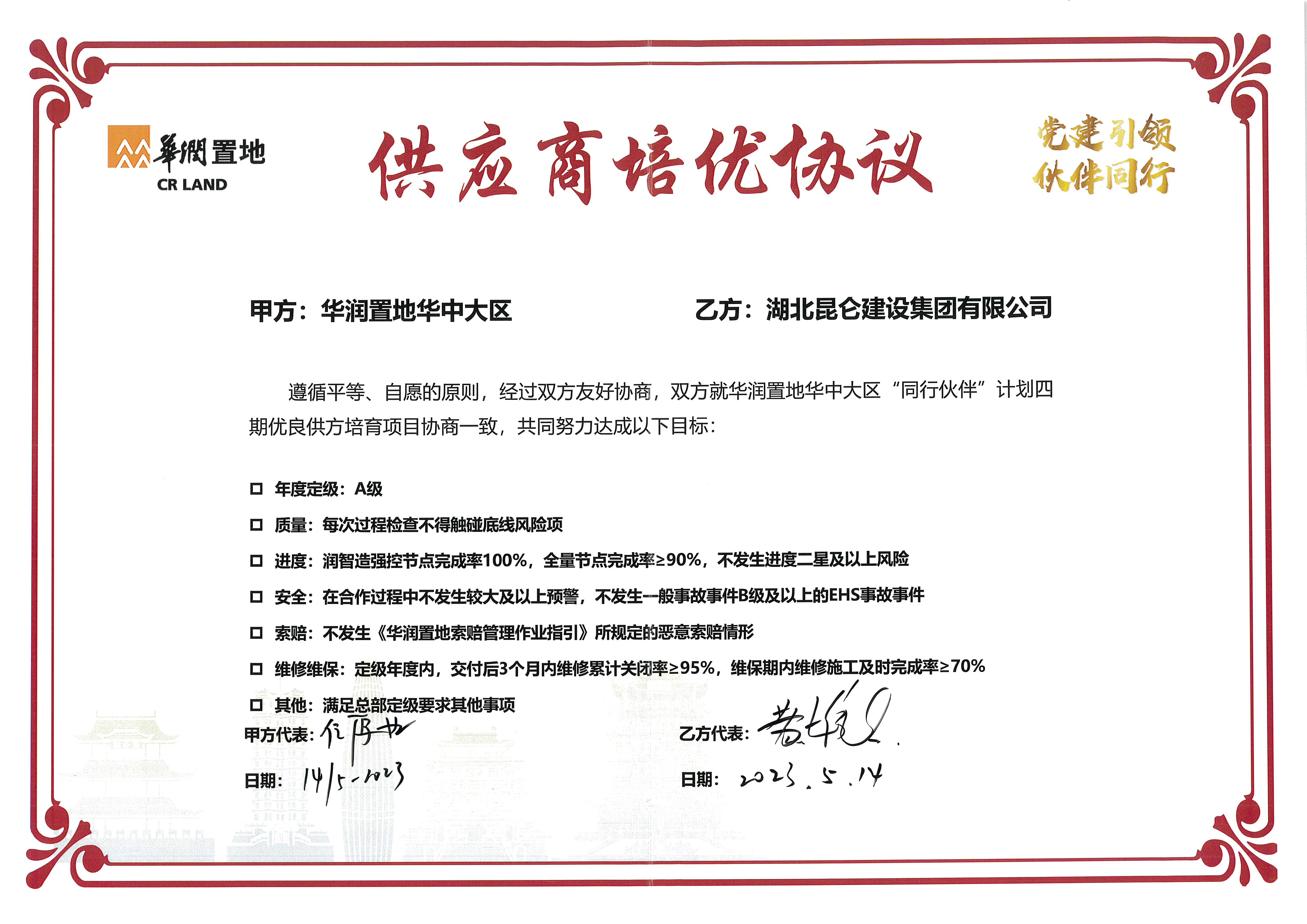 • 2023年5月14日簽署華潤置地華中大區(qū)(供應商...