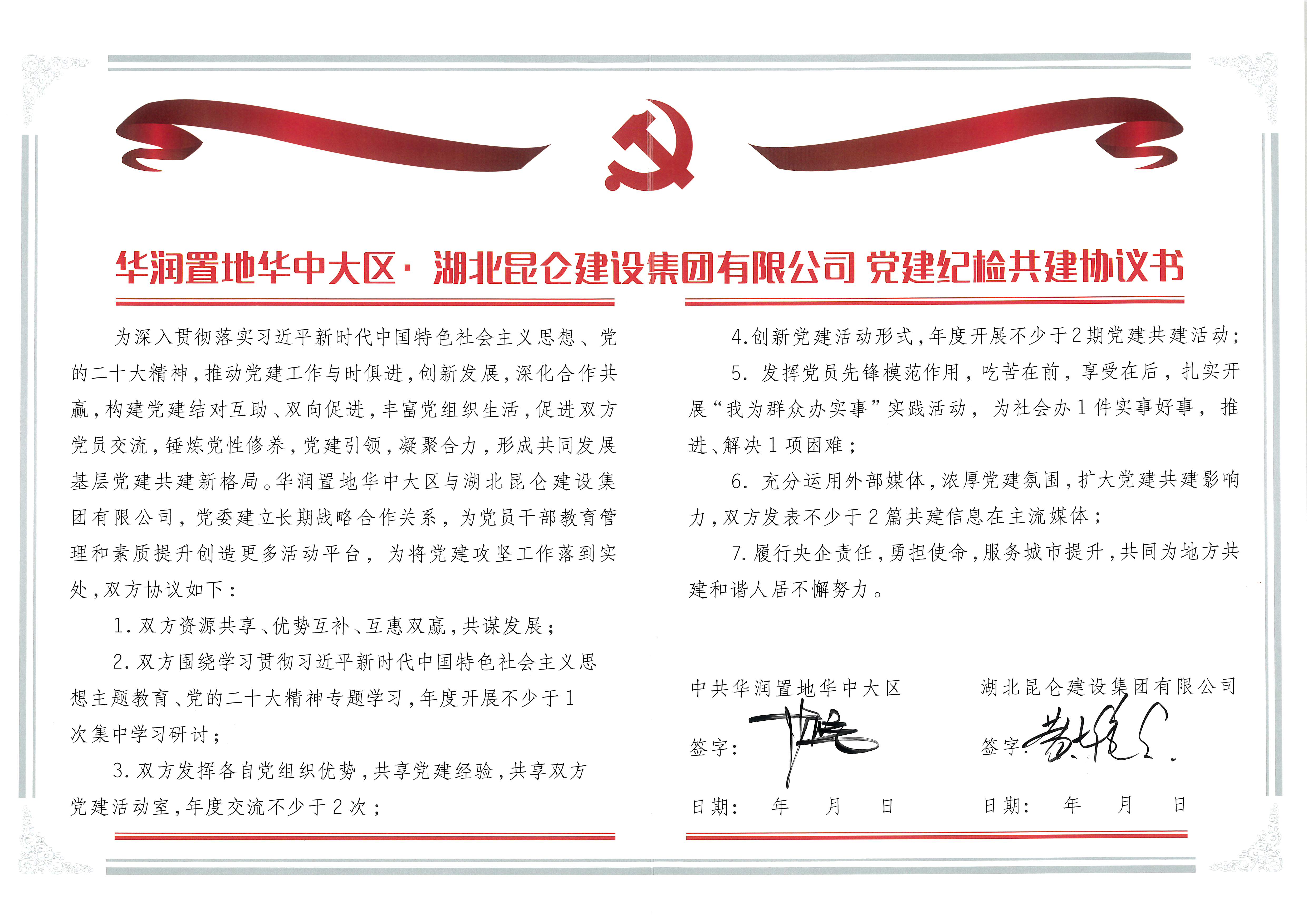 • 2023年簽署華潤置地華中大區(qū)黨建紀檢共建協(xié)議書